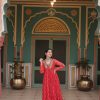 Gown Fabrics & Work :- Bandhani Print Work With Kutchi Patchework In Faux Georgette.