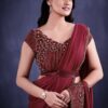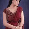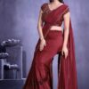 Red crepe lycra designer saree crafted with sequin and cord embroidery work. The saree comes with a unstitched matching raw silk blouse.