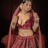 Red designer bridal lehenga choli, delicately crafted with, sequin, stone and diamonds. Comes with a matching soft velvet lehenga, choli and net dupatta.