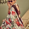 Red floral print satin silk saree crafted with all over print. The saree comes with a matching blouse.