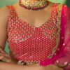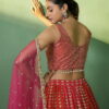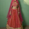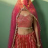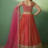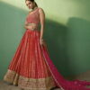 Red georgette embroidered lehenga choli, made with thread, sequin work. Comes with a matching lehenga choli and dupatta.