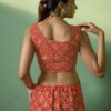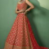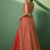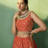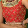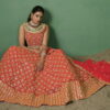 Red georgette embroidered lehenga choli, made with thread, sequin work. Comes with a matching georgette lehenga, silk choli and georgette dupatta.