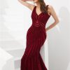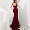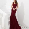 Red Mermaid Trail Back Beaded Dress, beautifully hand made together with sequin, bead patterns on the dress with empire waistline this comes with bra padded.