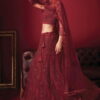 Red net bridal lehenga choli, designed with sequin, zari work, hand embroidered paired with matching embroidered blouse and dupatta.