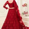 Red Net With Satin Silk Embroidered Lehenga Choli, designed with sequin, zari and resham work with emrboidered patterns and patch work. Comes with Cancan inner and matching choli set,