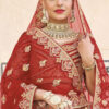 Red silk bridal lehenga choli, designed with sequin, zari work, hand embroidered paired with matching embroidered blouse and net dupatta.