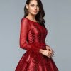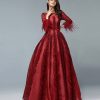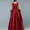 Red Wine Feather Sleeve Embellished Dress, created together with crystal bead patterns on the dress with empire waistline and side pockets the dress comes with a padded bust.