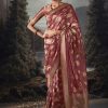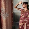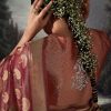 Rose embroidered banarasi wedding saree, embellished with swarovski stone and thread work enhanced by fancy tassels. The saree comes with a matching blouse.