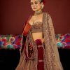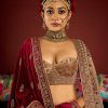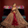 Royal chiku velvet embroidered bridal lehenga choli, delicately crafted with thread, zari, sequin, stone and diamonds. Comes with a matching soft velvet lehenga, choli and net dupatta.