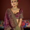 Royal wine velvet embroidered bridal lehenga choli, delicately crafted with thread, zari, sequin, stone and diamonds. Comes with a matching soft velvet lehenga, choli and net dupatta.