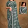 Sage fancy georgette designer saree crafted with sequin and cord embroidery work. The saree comes with a unstitched matching satin blouse.