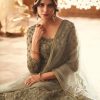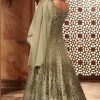 Sage Net Floor Length Anarkali Lehenga with embroidered resham work, patch border with touch up patterns on the yoke, sleeves and lower part of the kameez. Comes with matching bottom and embroidered dupatta.