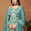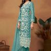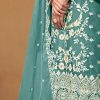 Sea green embroidered Salwar Kameez Suit made with sequence and thread embroidered work. Comes with matching organza top, santoon pant and organza dupatta.