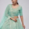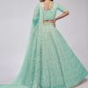 Sea green heavy embroidered bridal lehenga choli, made with thread, sequins and zarkan work. Comes with matching soft net lehenga, choli and dupatta.