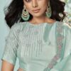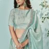 Sea green organza silk designer saree crafted with sequin and cord embroidery work. The saree comes with a unstitched matching soft taffeta blouse.