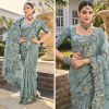 saree fabric sea green pure organza saree with thread ,sequence, moti ,cut-dana & zarkan heavy work 5.5 meter. Blouse banarasi jari 1 meter unstitched