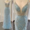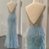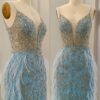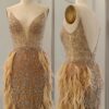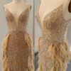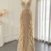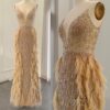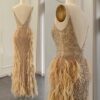 Sequin embellished feathered evening gown, beautifully hand crafted together with sequins beads all over the dress.