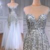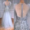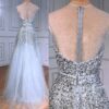 Sequin Embellished Grey Evening Dress With Detachable Sleeves, beautifully hand crafted together with embroidered beaded work patterns all over the dress.