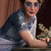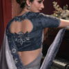 Shaded blue half n half bridal Saree designed with hand made flowers and heavy sequence work. The saree comes with a matching art silk blouse.