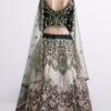 Shaded green silk bridal lehenga choli crafted with heavy work sequin and thread dori work. Comes with a matching silk choli and net dupatta.