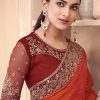 Shaded orange embroidered border party wear saree, made with intricate embroidery border work. The saree comes with a matching blouse.