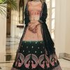 Shaded orange & green party wear lehenga choli, print with sequence embroidered work. Comes with a matching art silk choli, lehenga and georgette dupatta.