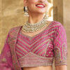 Shaded pink silk bridal lehenga choli, designed with sequin, zari work, hand embroidered paired with matching embroidered blouse and net dupatta.