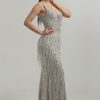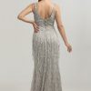 Sheer Grey Sequin Luxury Long Evening Gown is beautifully weaved together with Beading,Crystal,Pearls,Sequined work patterns all over the dress with bra padded .