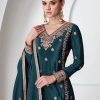 Teal chinon silk embroidered palazzo suit made with thread zari, and sequin work. Comes with matching top, bottom and dupatta.