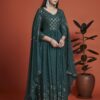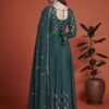 Teal embroidered anarkali suit made with sequins and thread work. Comes with matching top, bottom and dupatta.
