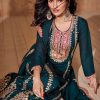 Teal embroidered festive wear palazzo Suit made with sequence stone and thread work. Comes with matching top, pant and dupatta.