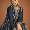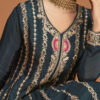 Teal embroidered gharara style suit made with thread and zari patch border work. Comes with Top, bottom and dupatta.