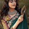 Teal embroidered wedding saree, embellished with sequin stone and thread work enhanced by fancy tassels. The saree comes with a matching contrast blouse.
