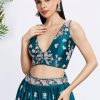 Teal floral embroidered bridal lehenga Choli in poly georgette fabric delicately made with, thread, sequin, stone and diamond work. Comes with a matching choli and dupatta.