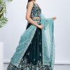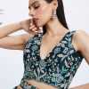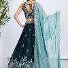Teal floral sequinned wedding lehenga Choli in raw silk delicately made with, thread, sequin, stone and diamond work. Comes with a matching choli and dupatta.