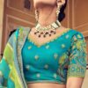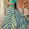 Teal heavy silk lehenga choli, designed with sequin, zari work, hand embroidered paired with matching embroidered blouse and banarasi silk dupatta.