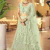 Turquoise blue embroidered party wear lehenga choli made with thread & stone sequins work. Comes with matching choli and dupatta.