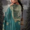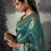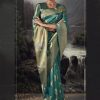 Turquoise embroidered banarasi wedding saree, embellished with swarovski stone and thread work enhanced by fancy tassels. The saree comes with a matching blouse.