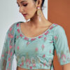 Turquoise embroidered party wear lehenga choli made with zarkan and dori with sequins. Comes with matching lehenga choli and dupatta.