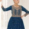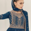 Turquoise floor length anarkali suit made with thread zari sequin work. Comes with matching top, bottom and dupatta.