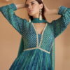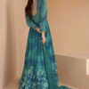 Turquoise georgette embroidered anarkali gown, made with thread zari sequin work. Comes with top and a net dupatta. No trouser.