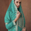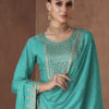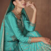 Turquoise georgette sharara suit made with thread zari sequin work. Comes with matching top, bottom and chinon dupatta.