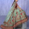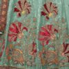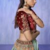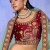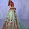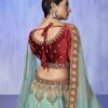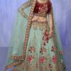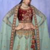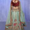 Turquoise heavy embroidered bridal lehenga choli, made with thread and zarkan work. Comes with matching velvet lehenga, choli and net dupatta.
