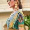 Turquoise smooth silk woven lehenga choli crafted with royal themed print, stone and mirror work. Comes with matching lehenga choli and dupatta.