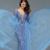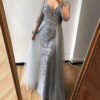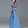 Blue Sequined Sparkle V Neck Evening Dress, beautifully hand made together with beaded, Sequinned,Crystal work patterns over the dress with bra padded. Empire waistline.
