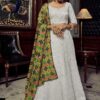 White Embroidered Party Wear Lehenga Choli crafted with sequin and thread zari work. Comes with matching lehenga choli and silk dupatta.