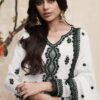 White embroidered silk palazzo suit made with thread zari sequin work. Comes with matching top, bottom and dupatta.