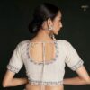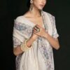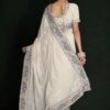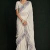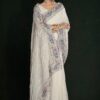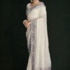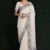 White georgette lucknowi embroidered wedding saree crafted with sequin & dori work. Comes with matching blouse.