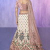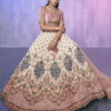 White heavy embroidered bridal lehenga choli, made with thread and zarkan work. Comes with matching georgette lehenga, velvet choli and net dupatta.