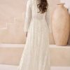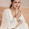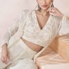 White palazzo suit with crop top & shrug, made with thread zari, and sequin work. Comes with matching top, bottom and shrug.